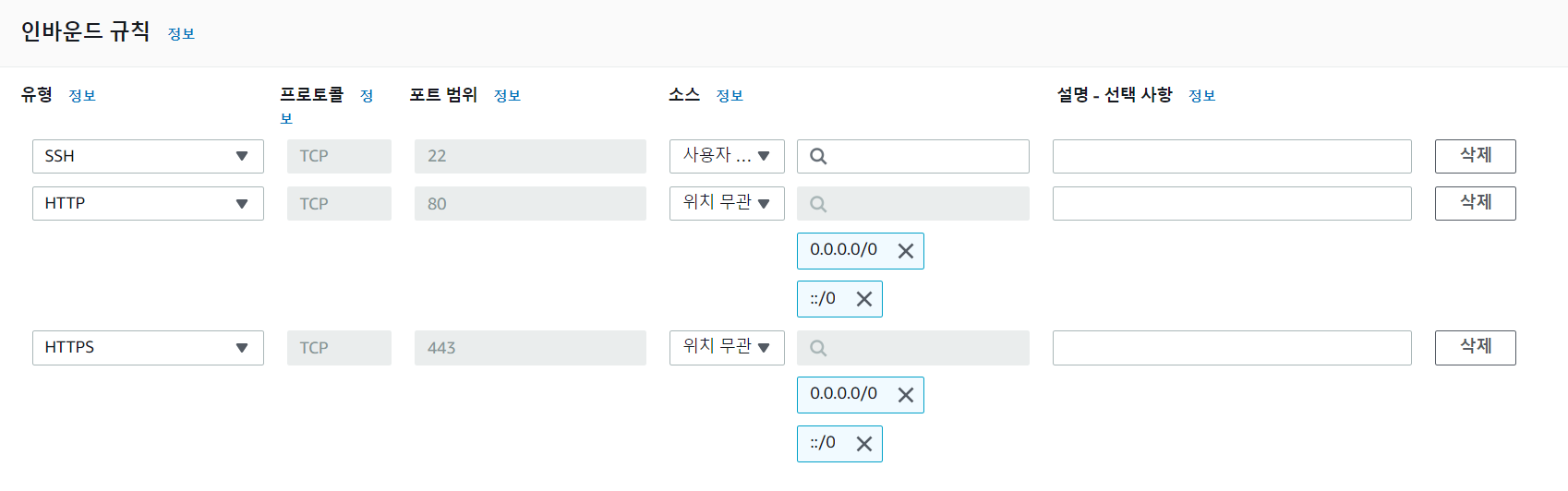 저는 HTTPS도 사용할 예정으로 미리 열어뒀습니다.